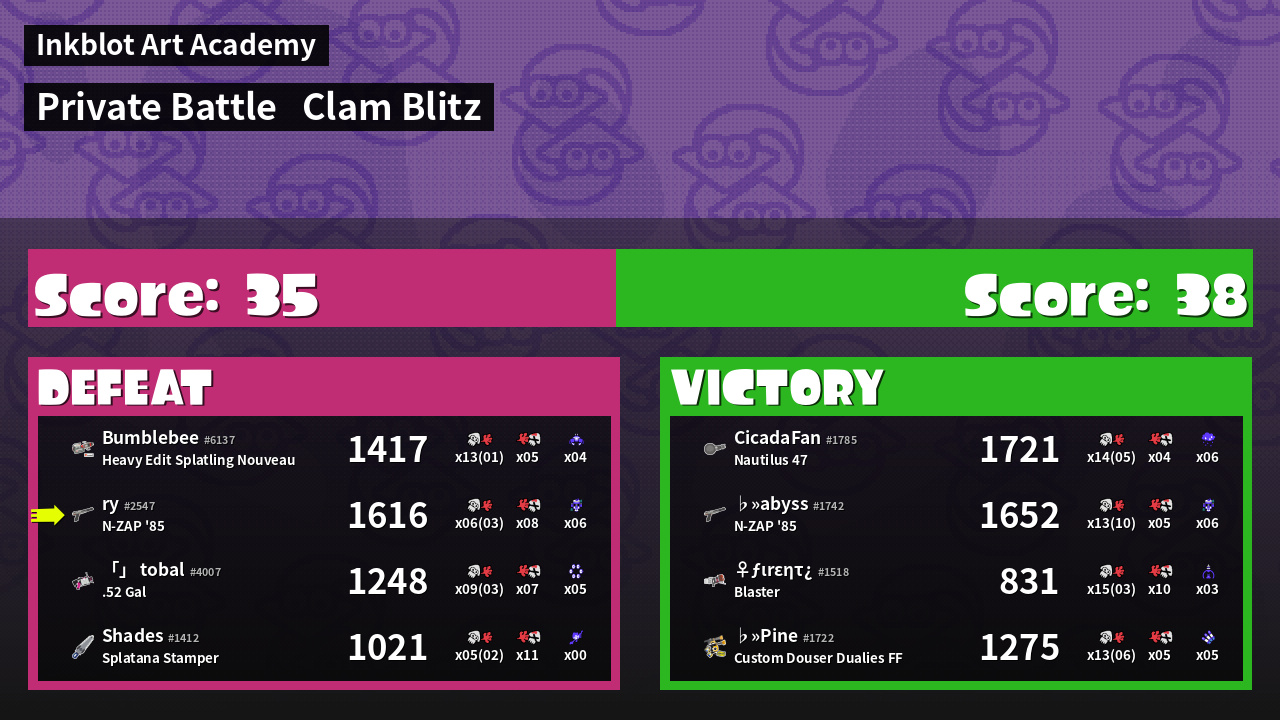 Name | Weapon | Inked | ![]() |