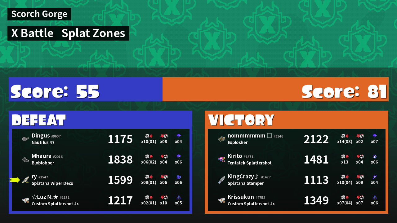 Kills / Deaths | 8 + 1 / 6 > Kill Ratio: 1.33 | ||