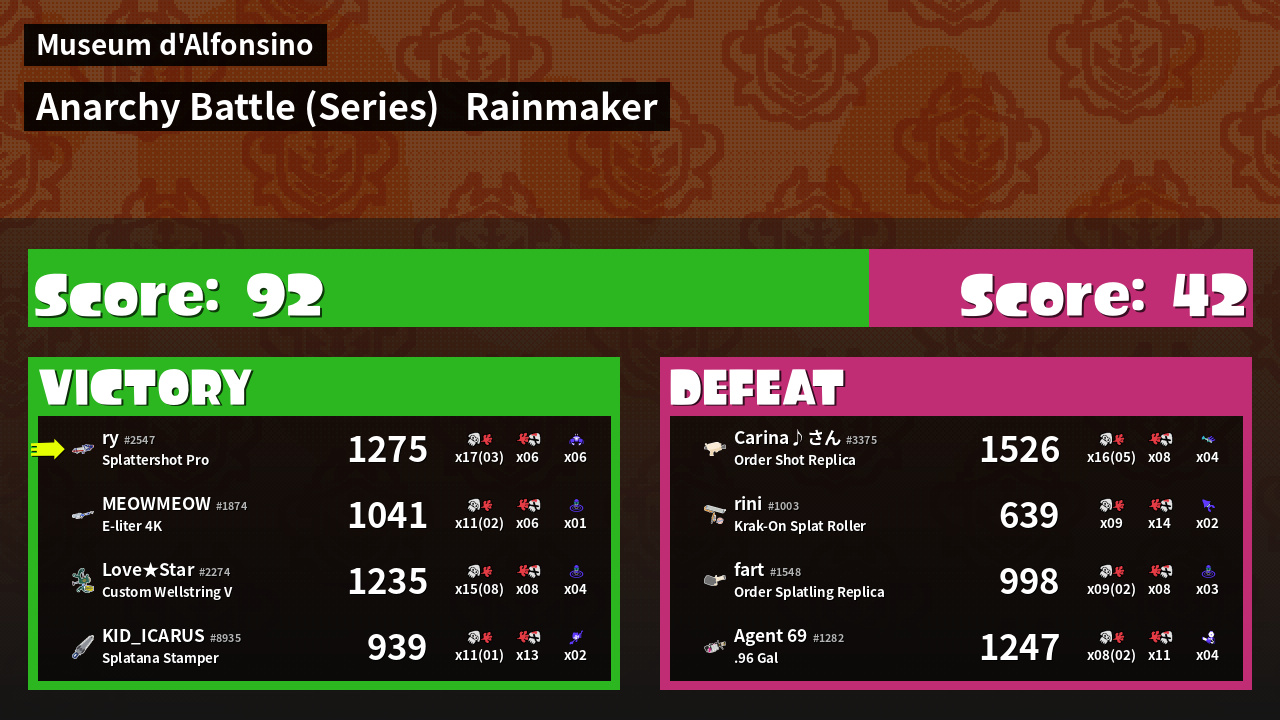 Kills / Deaths | 14 + 3 / 6 > Kill Ratio: 2.33 | ||