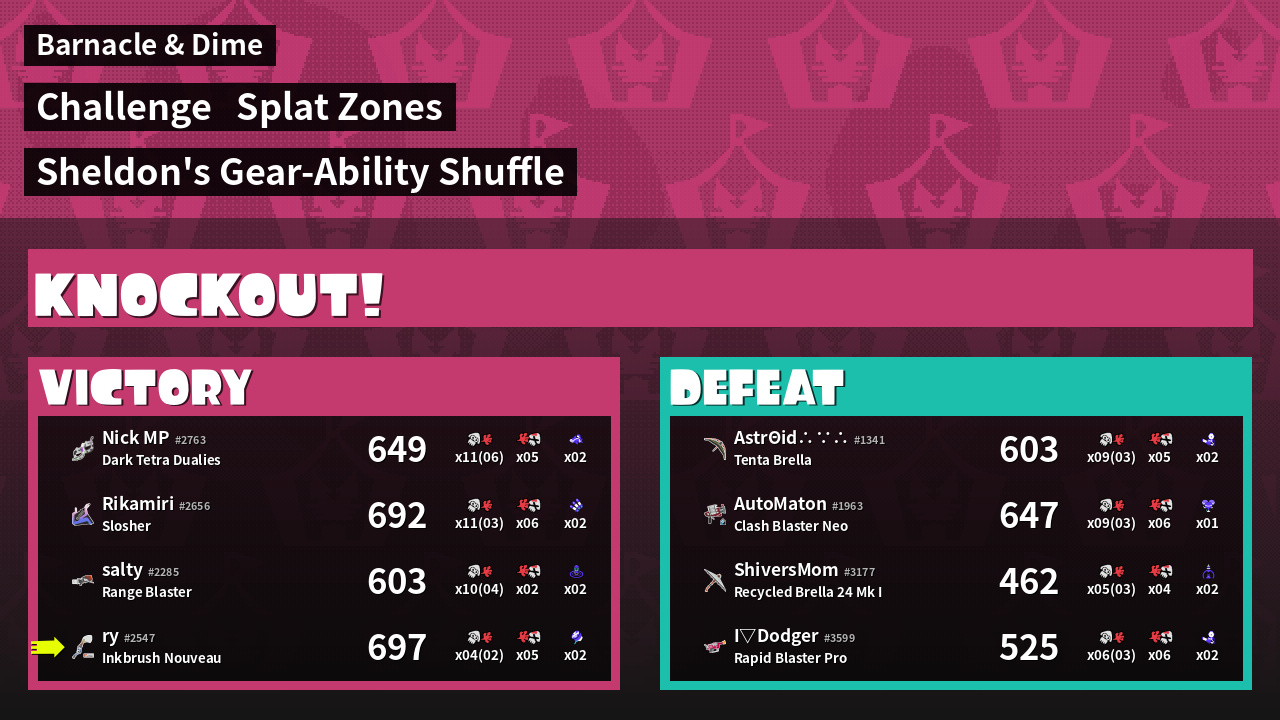 Challenge | Sheldon's Gear-Ability Shuffle Let Sheldon pick your loadout for a battle<br />of random weapons and gear abilities! | ||