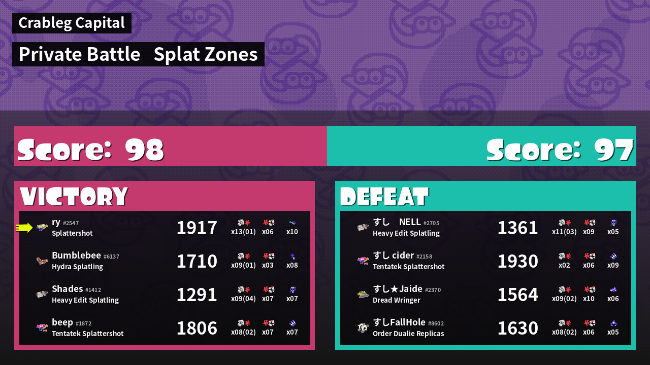 Kills / Deaths | 12 + 1 / 6 > Kill Ratio: 2.00 | ||