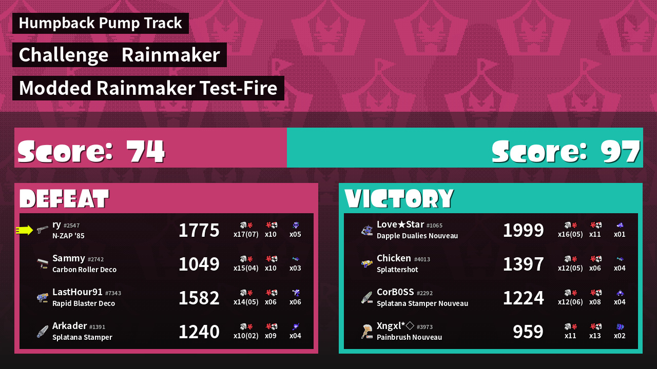 Kills / Deaths | 10 + 7 / 10 = Kill Ratio: 1.00 | ||