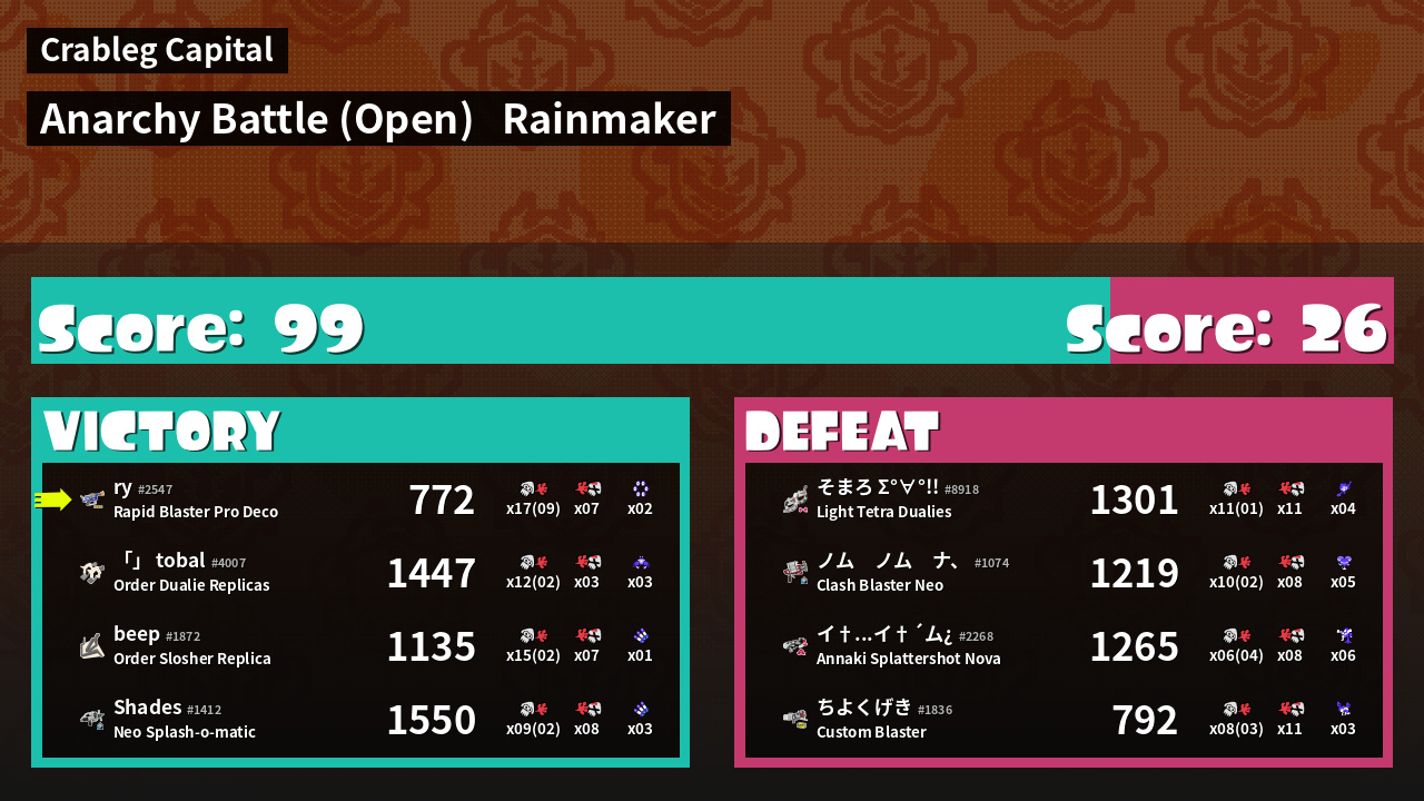 Kills / Deaths | 8 + 9 / 7 > Kill Ratio: 1.14 | ||
