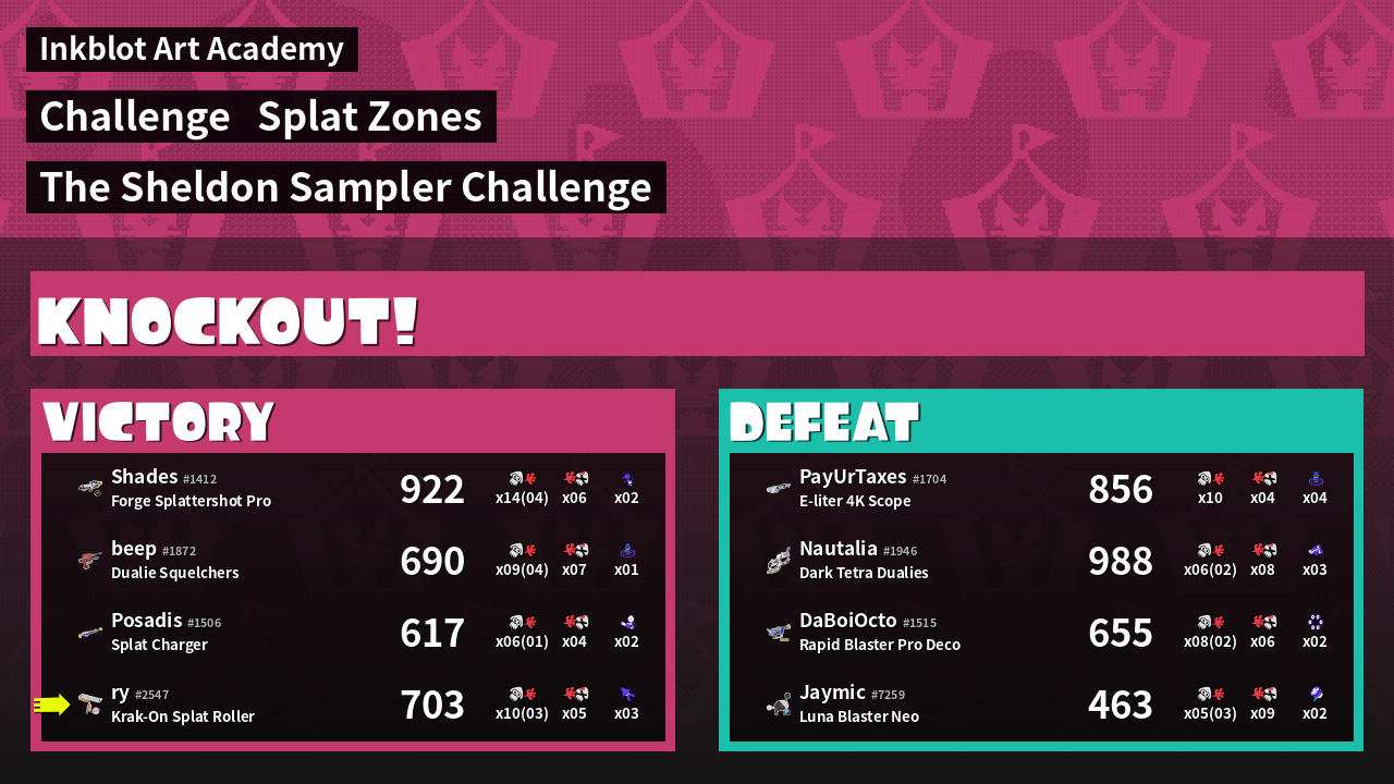 Challenge | The Sheldon Sampler Challenge Make the most of random weapons! | ||