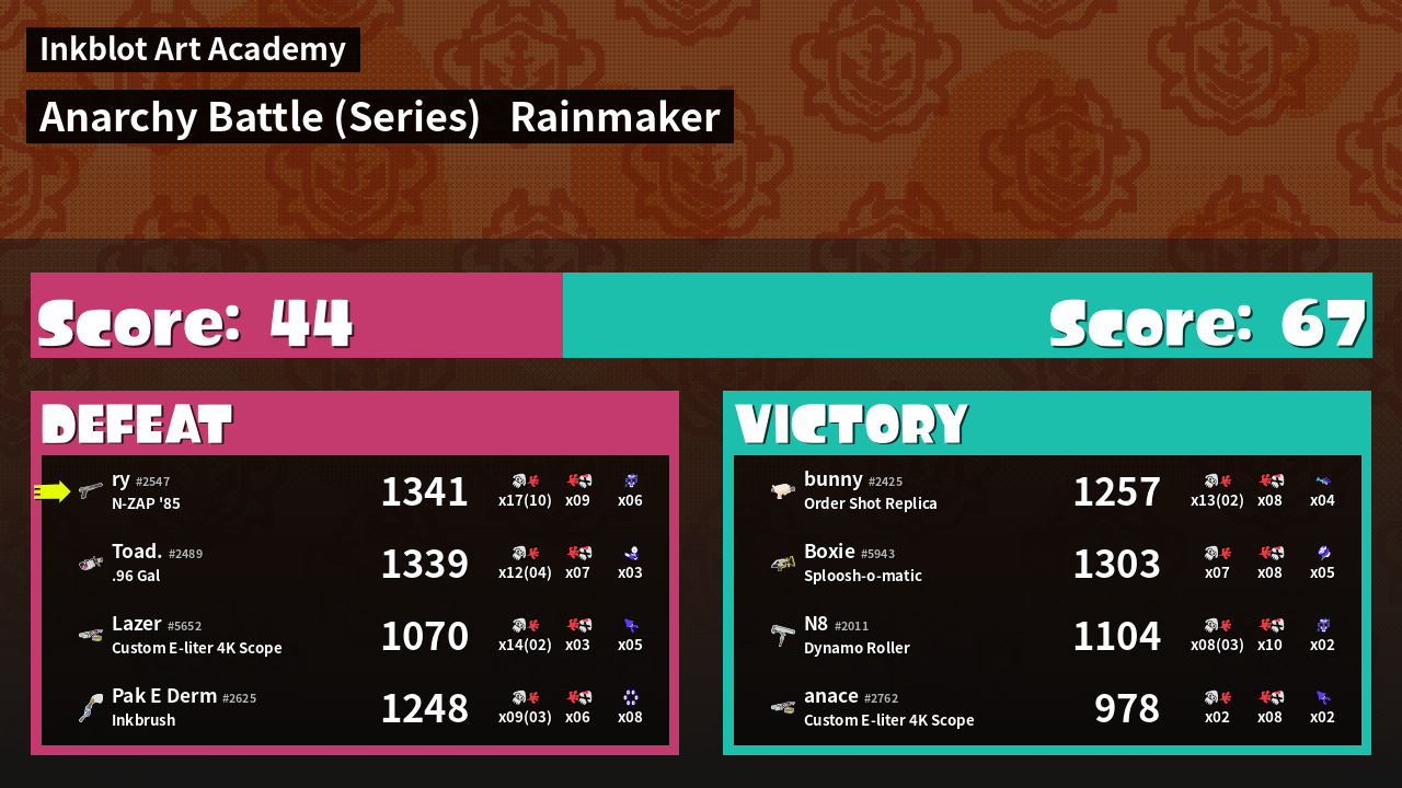 Name | Weapon | Inked | ![]() |