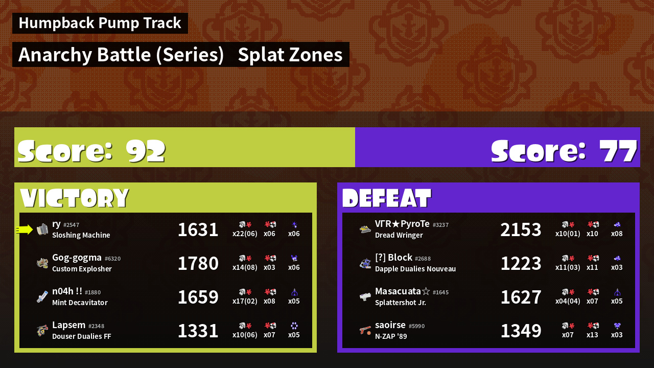 Kills / Deaths | 16 + 6 / 6 > Kill Ratio: 2.67 | ||