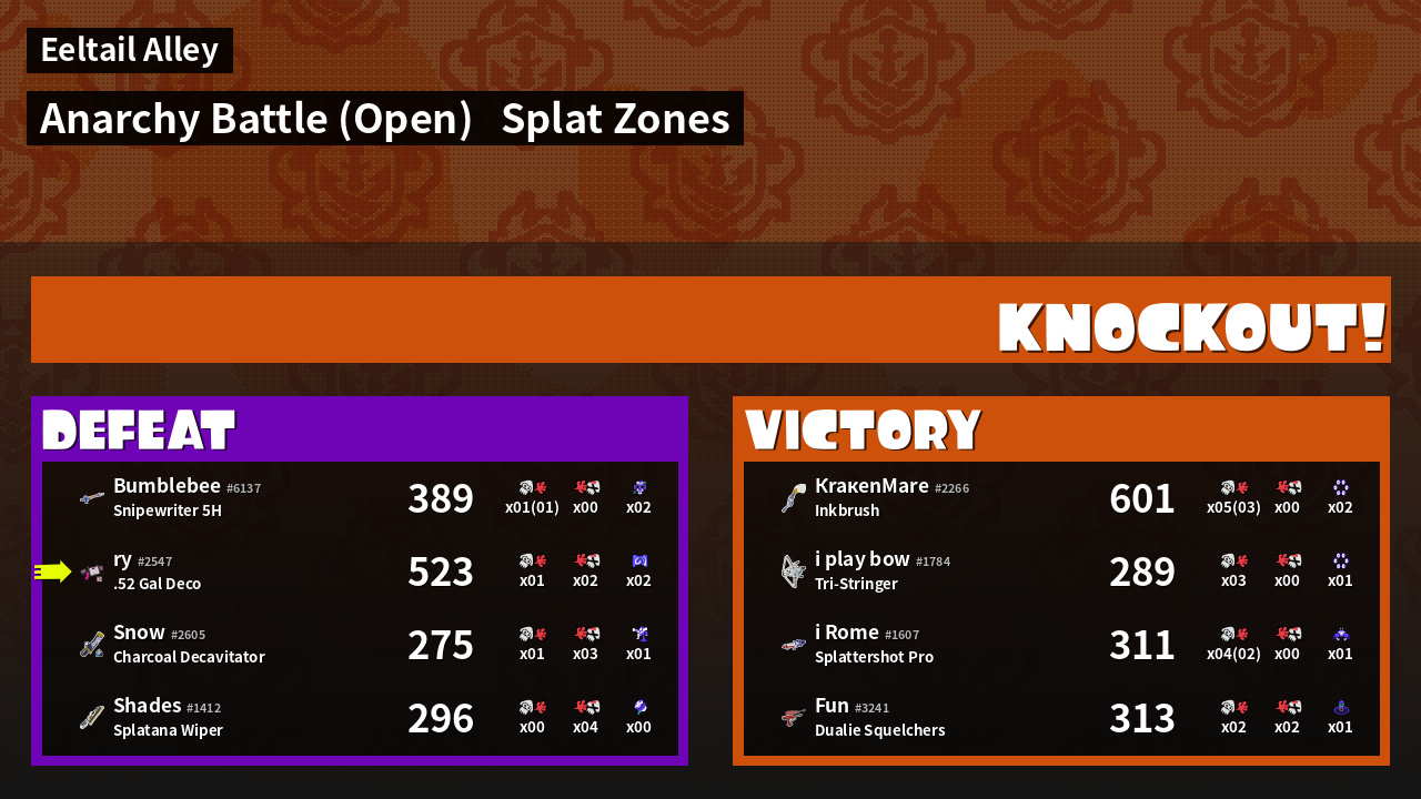 Kills / Deaths | 1 + 0 / 2 < Kill Ratio: 0.50 | ||