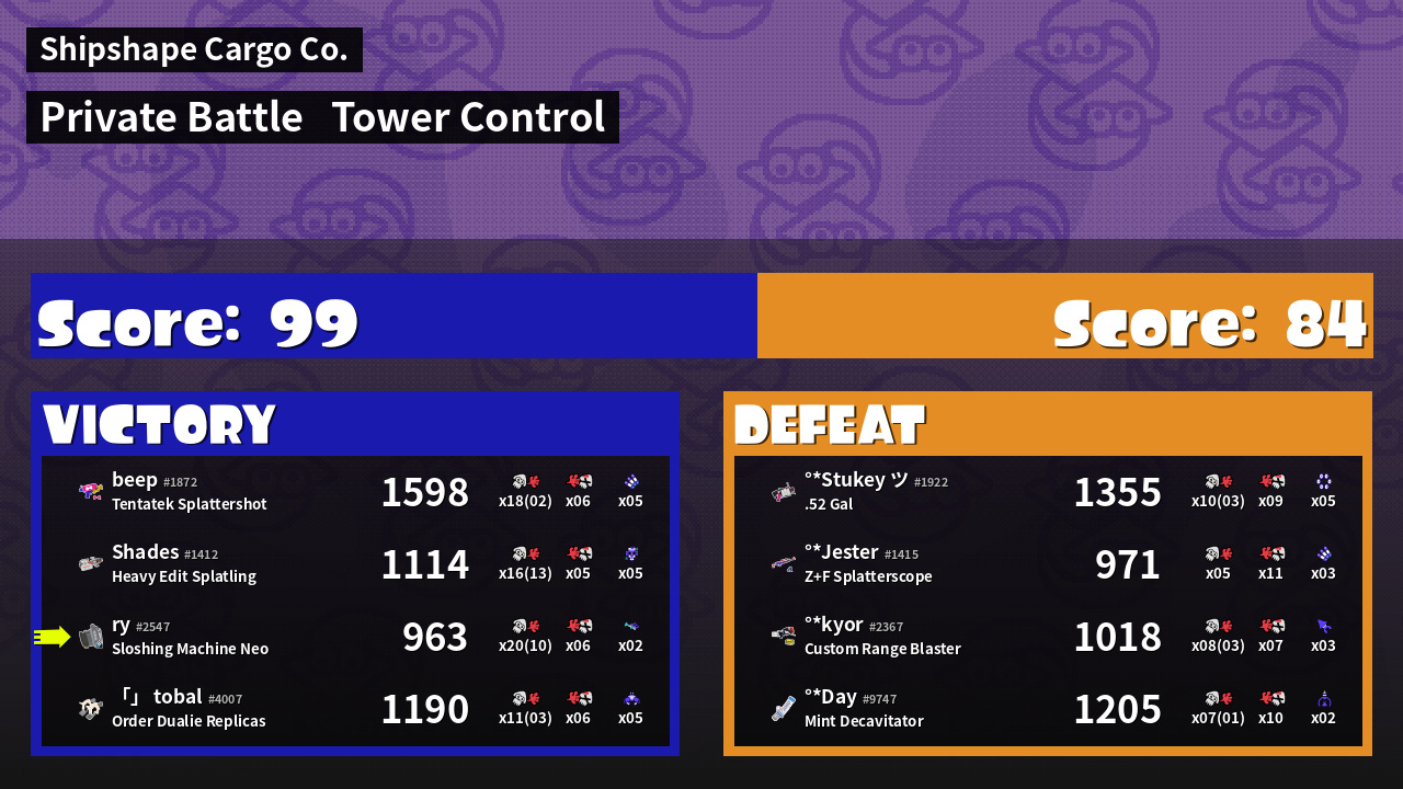 Kills / Deaths | 10 + 10 / 6 > Kill Ratio: 1.67 | ||