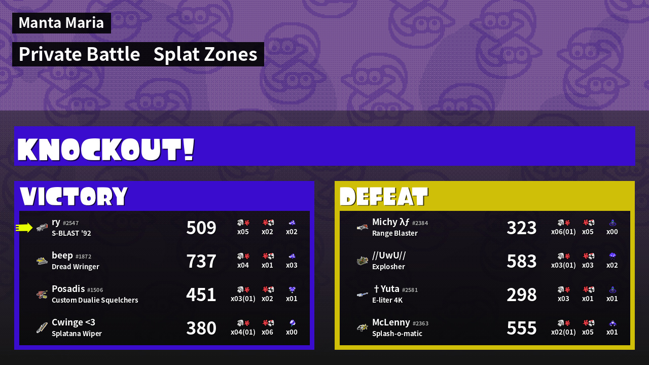 Kills / Deaths | 5 + 0 / 2 > Kill Ratio: 2.50 | ||