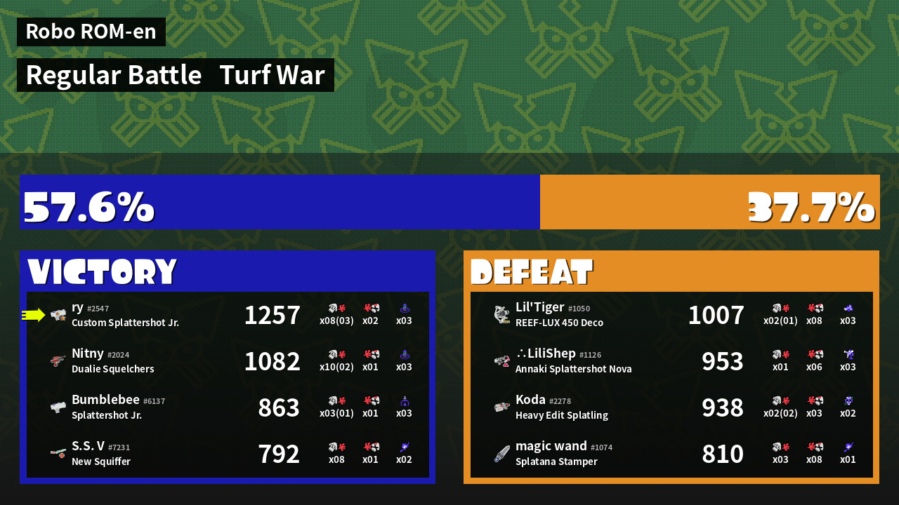 Kills / Deaths | 5 + 3 / 2 > Kill Ratio: 2.50 | ||