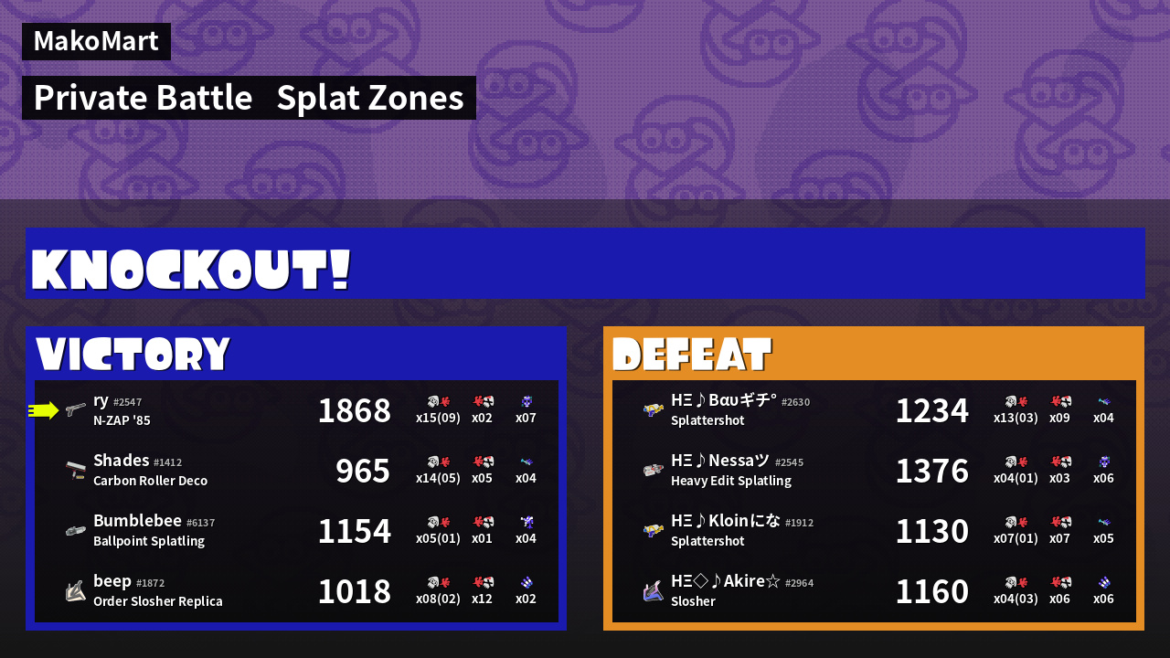 Kills / Deaths | 6 + 9 / 2 > Kill Ratio: 3.00 | ||