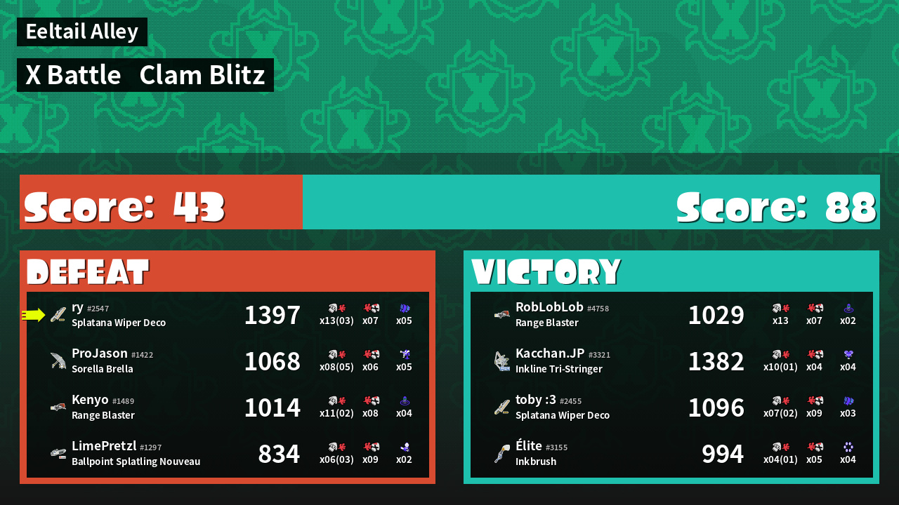 Kills / Deaths | 10 + 3 / 7 > Kill Ratio: 1.43 | ||