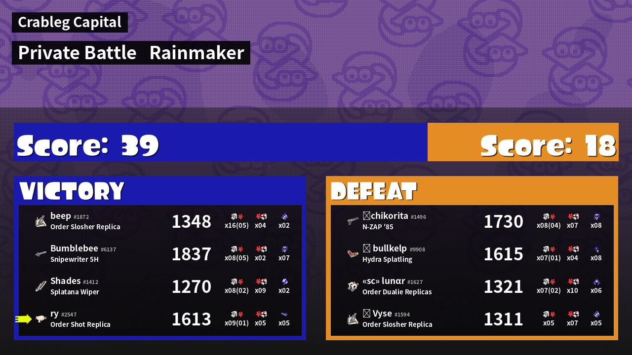 Kills / Deaths | 8 + 1 / 5 > Kill Ratio: 1.60 | ||