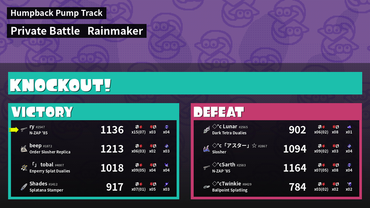 Kills / Deaths | 8 + 7 / 3 > Kill Ratio: 2.67 | ||
