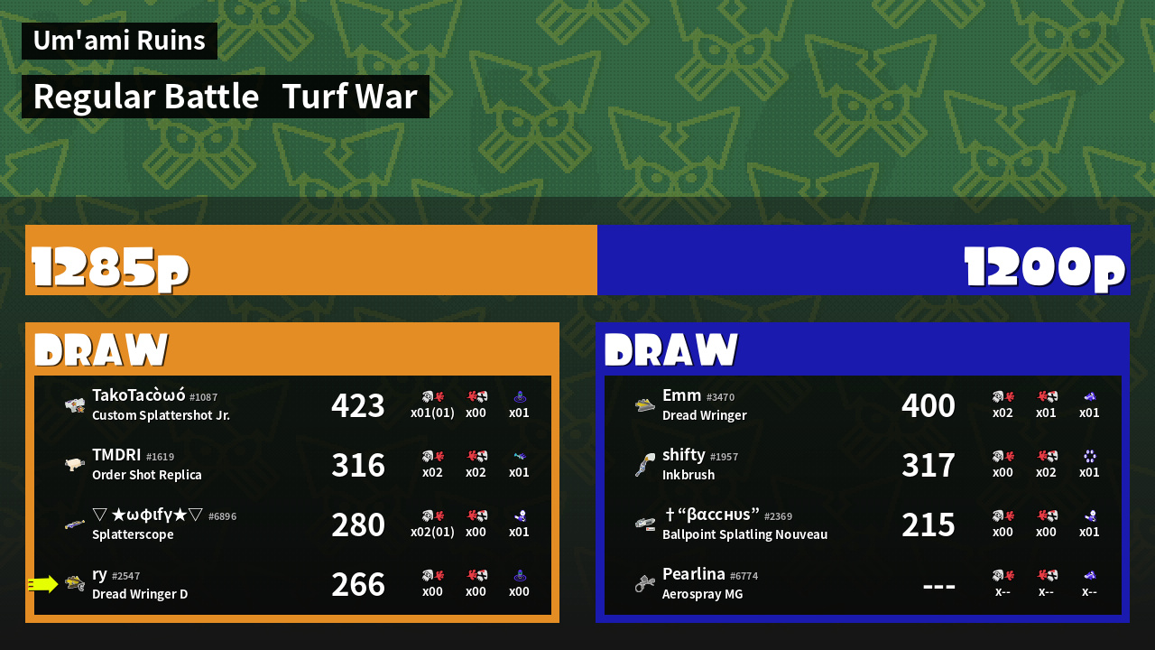 Kills / Deaths | 0 + 0 / 0 = Kill Ratio: 1.00 | ||