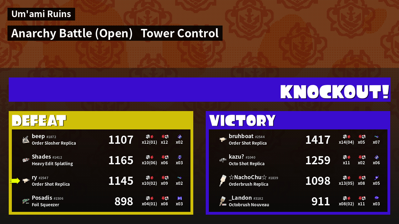 Name | Weapon | Inked | ![]() |