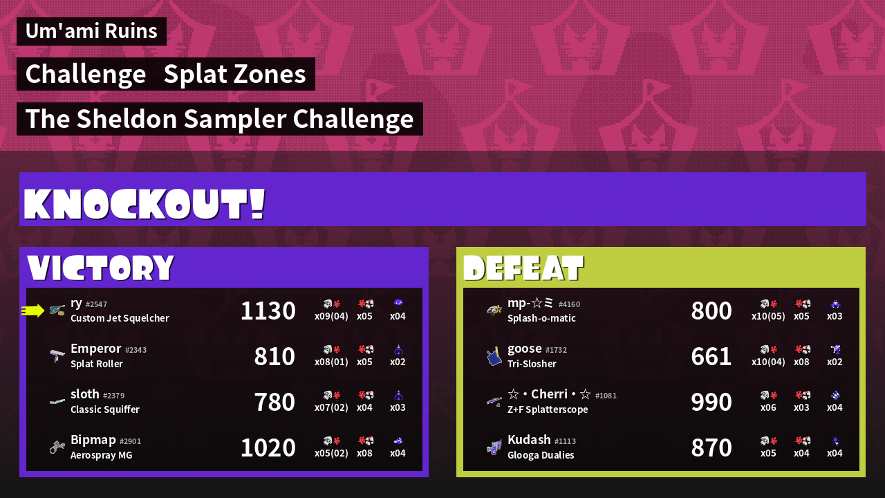 Challenge | The Sheldon Sampler Challenge Make the most of random weapons! | ||