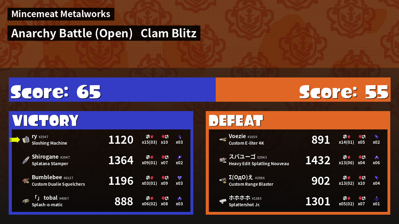 Kills / Deaths | 12 + 3 / 10 > Kill Ratio: 1.20 | ||