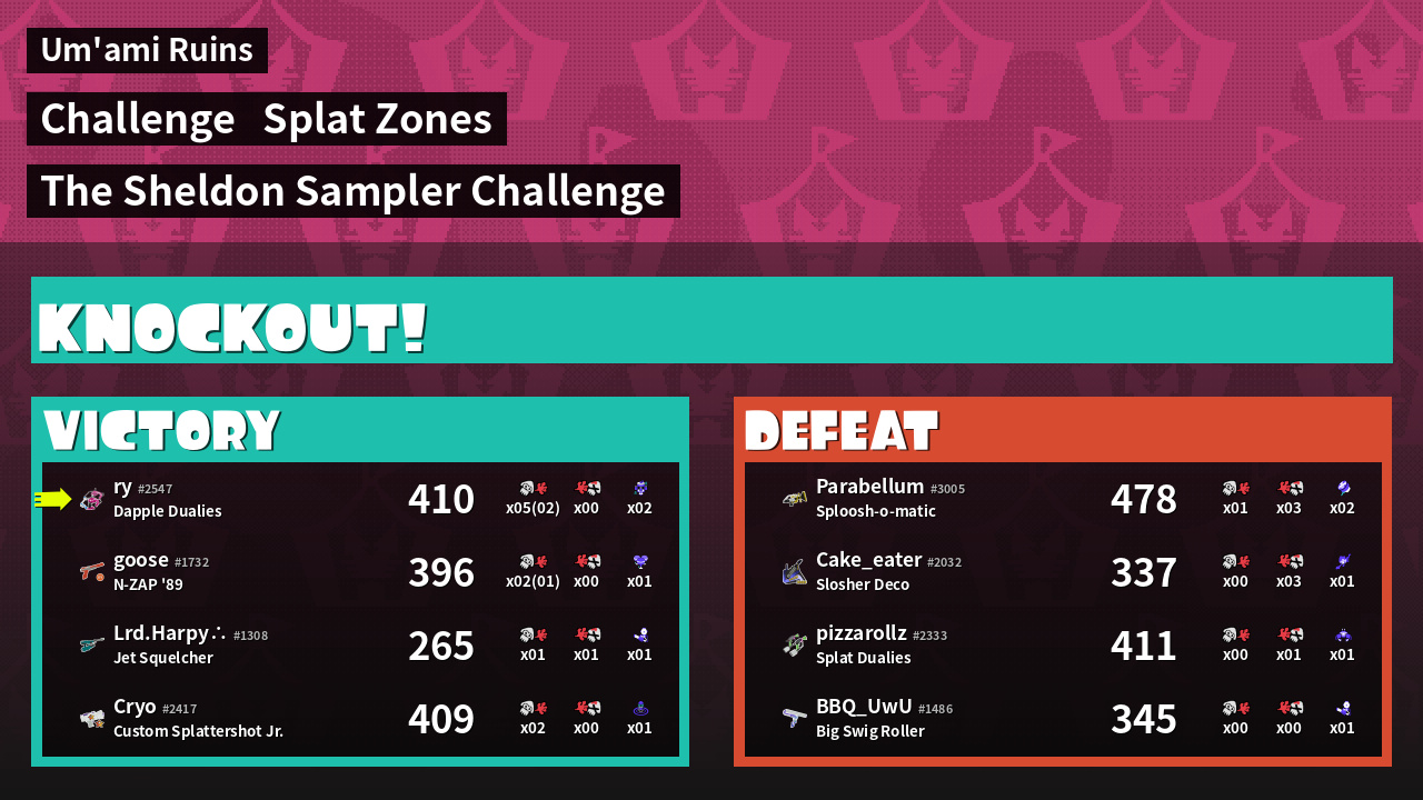 Challenge | The Sheldon Sampler Challenge Make the most of random weapons! | ||
