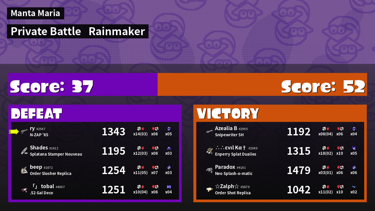 Kills / Deaths | 11 + 3 / 8 > Kill Ratio: 1.38 | ||