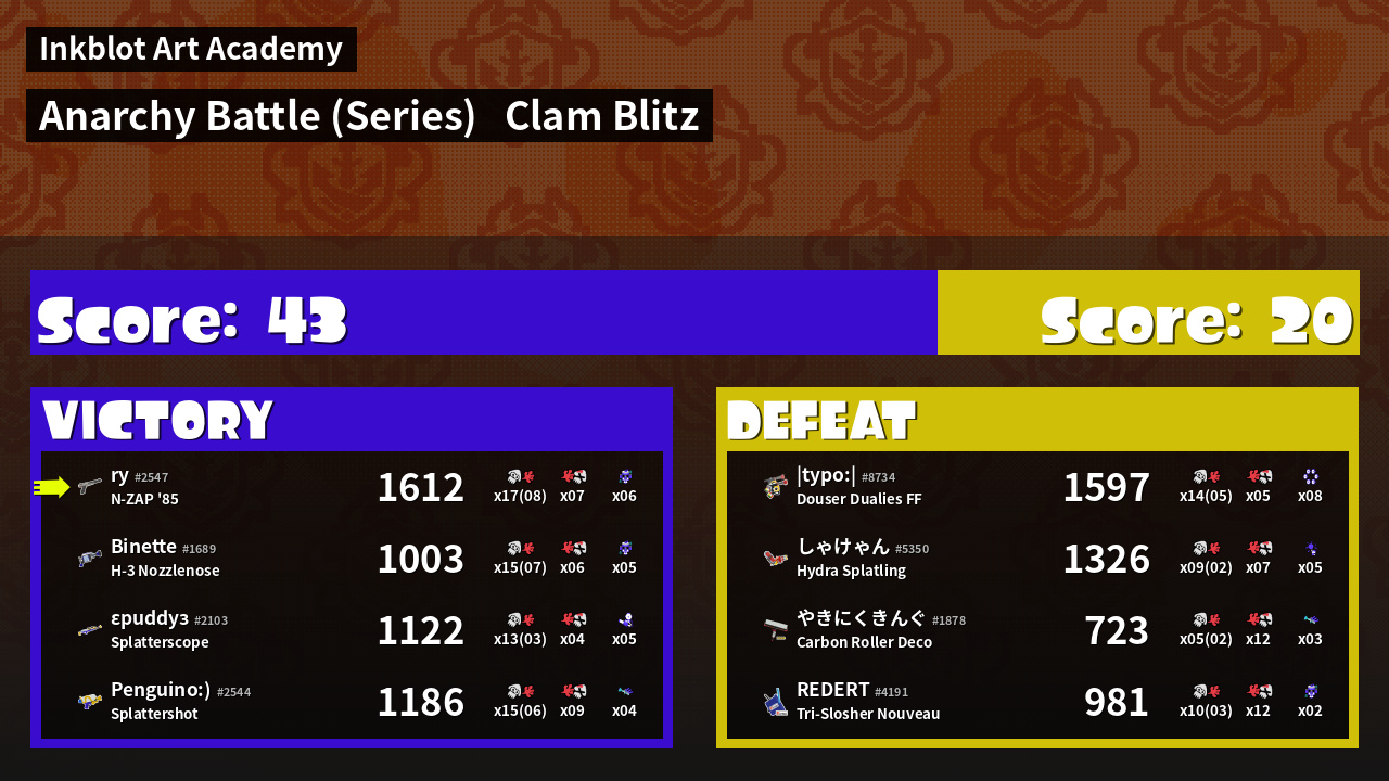 Kills / Deaths | 9 + 8 / 7 > Kill Ratio: 1.29 | ||