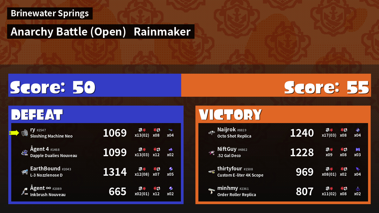 Name | Weapon | Inked | ![]() |