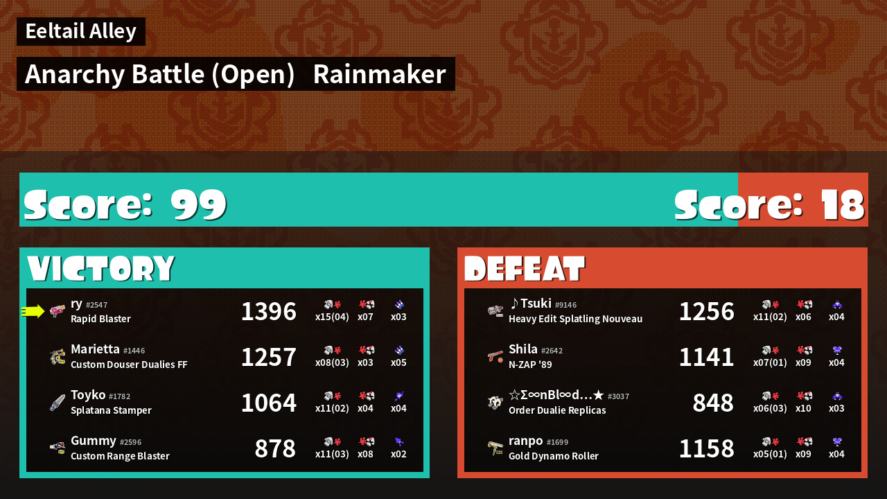 Kills / Deaths | 11 + 4 / 7 > Kill Ratio: 1.57 | ||