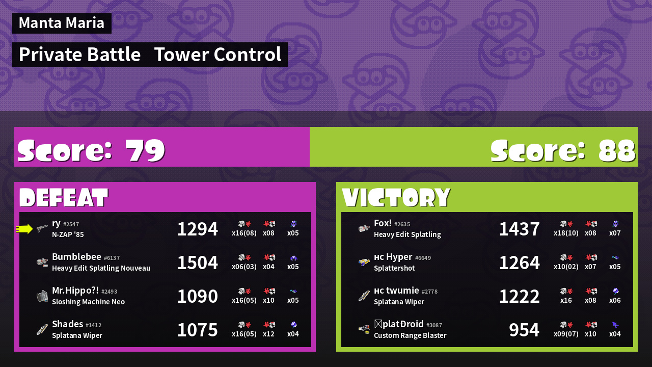 Kills / Deaths | 8 + 8 / 8 = Kill Ratio: 1.00 | ||