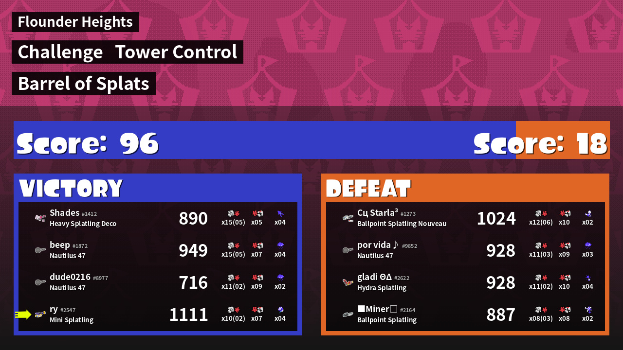 Challenge | Barrel of Splats Muster as much firepower as you can<br />in this battle of the splatlings! | ||