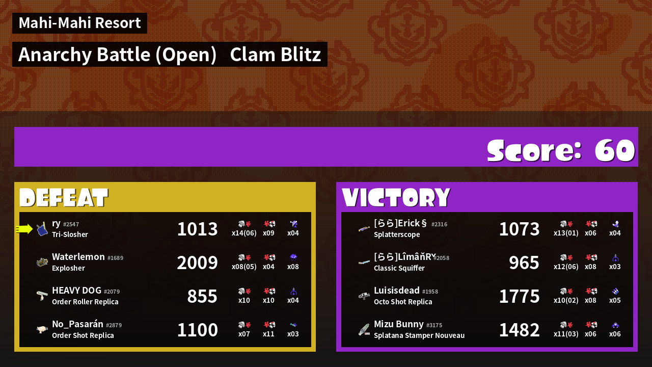 Kills / Deaths | 8 + 6 / 9 < Kill Ratio: 0.89 | ||
