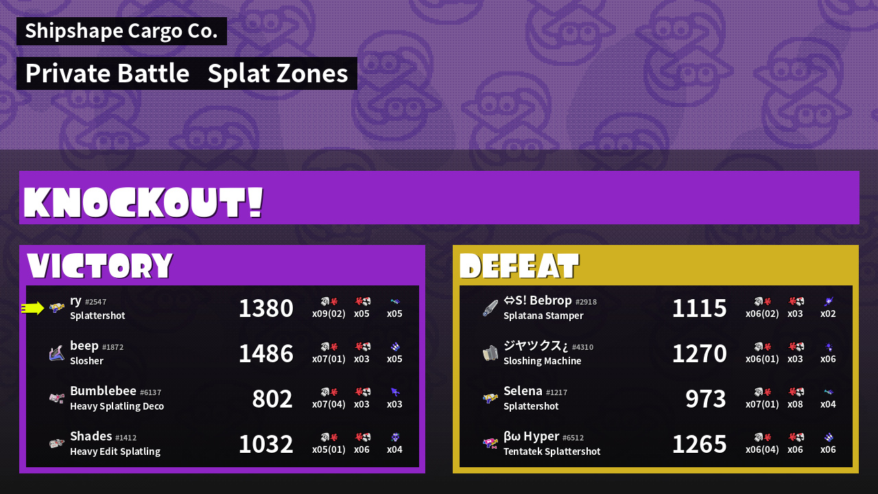 Kills / Deaths | 7 + 2 / 5 > Kill Ratio: 1.40 | ||
