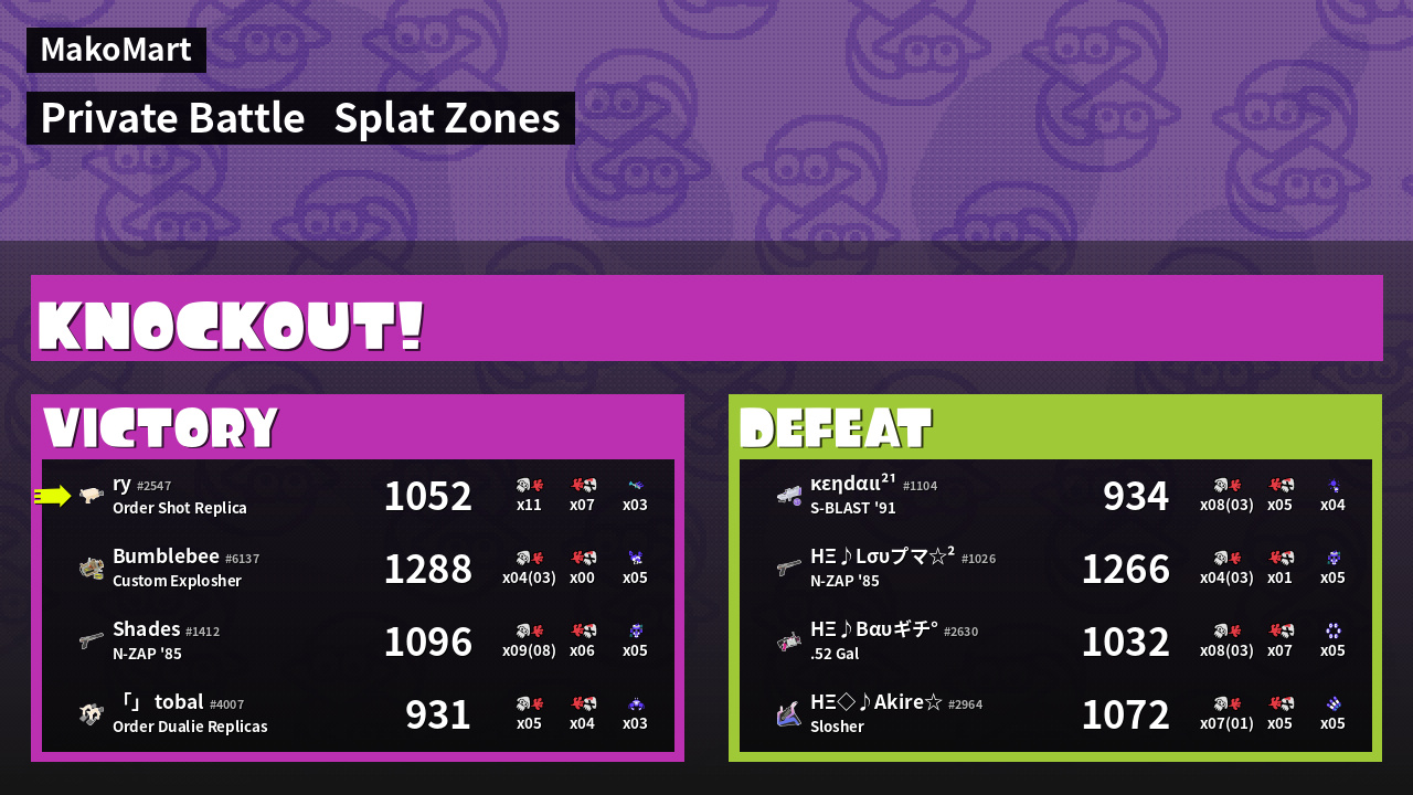 Kills / Deaths | 11 + 0 / 7 > Kill Ratio: 1.57 | ||