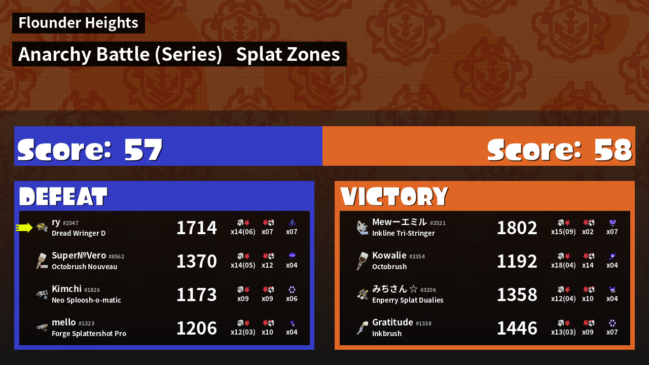 Kills / Deaths | 8 + 6 / 7 > Kill Ratio: 1.14 | ||