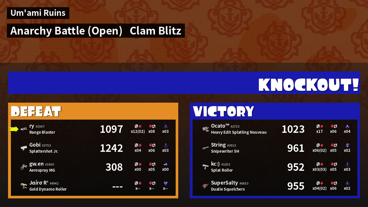 Kills / Deaths | 10 + 2 / 8 > Kill Ratio: 1.25 | ||