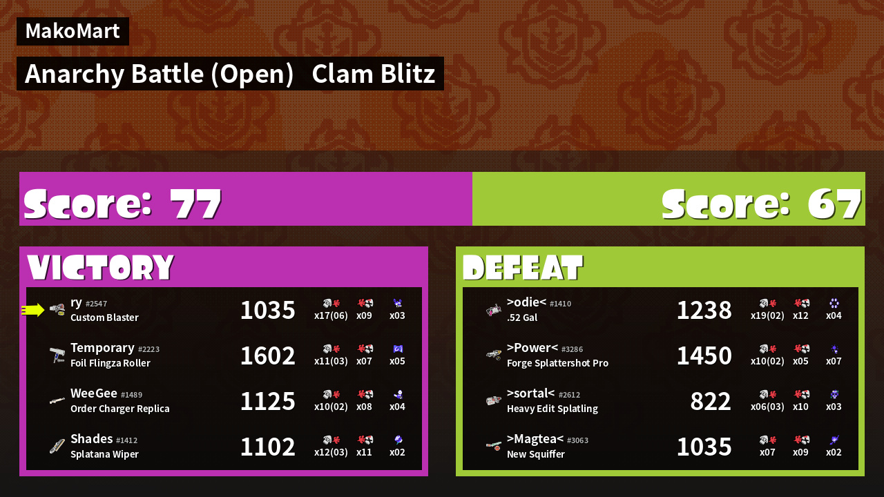 Kills / Deaths | 11 + 6 / 9 > Kill Ratio: 1.22 | ||