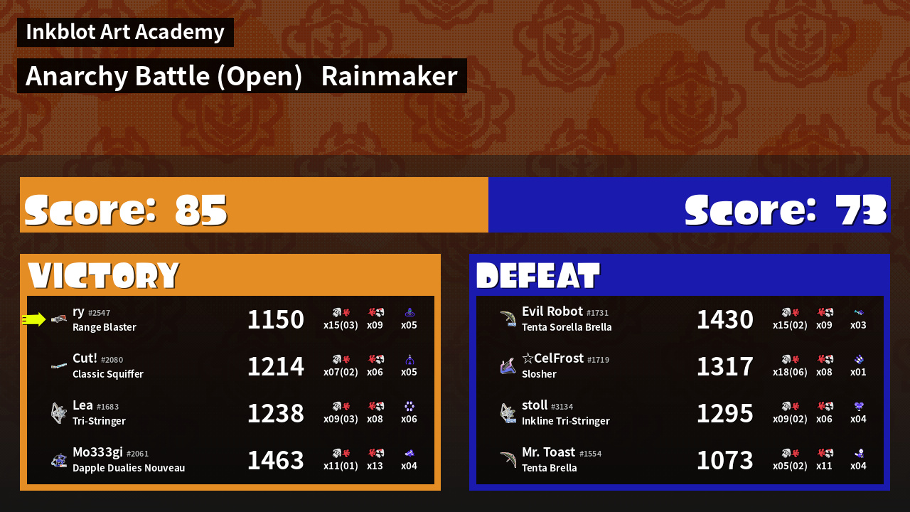 Kills / Deaths | 12 + 3 / 9 > Kill Ratio: 1.33 | ||