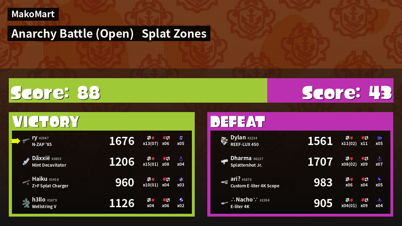 Kills / Deaths | 6 + 7 / 6 = Kill Ratio: 1.00 | ||