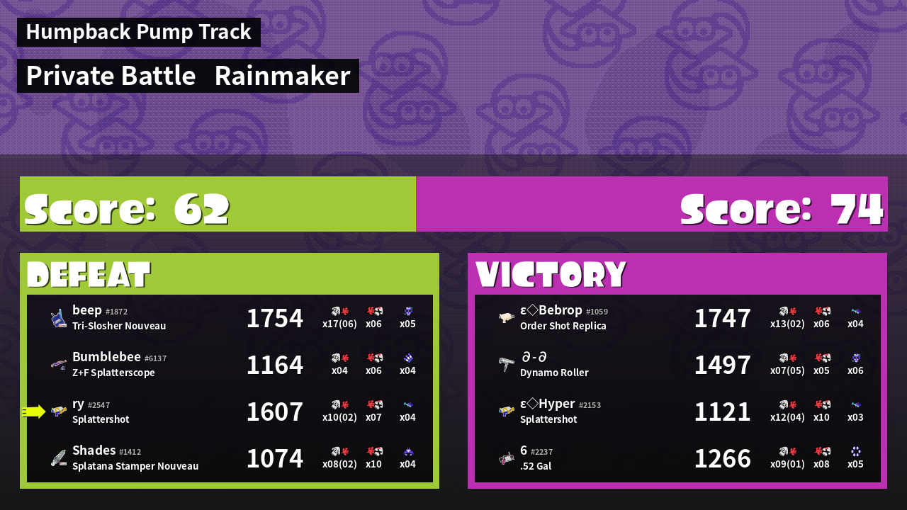 Kills / Deaths | 8 + 2 / 7 > Kill Ratio: 1.14 | ||