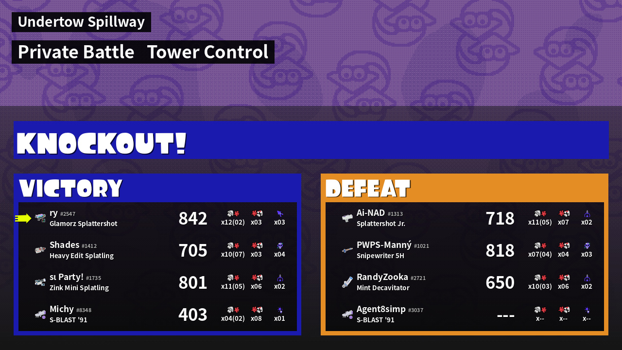 Kills / Deaths | 10 + 2 / 3 > Kill Ratio: 3.33 | ||