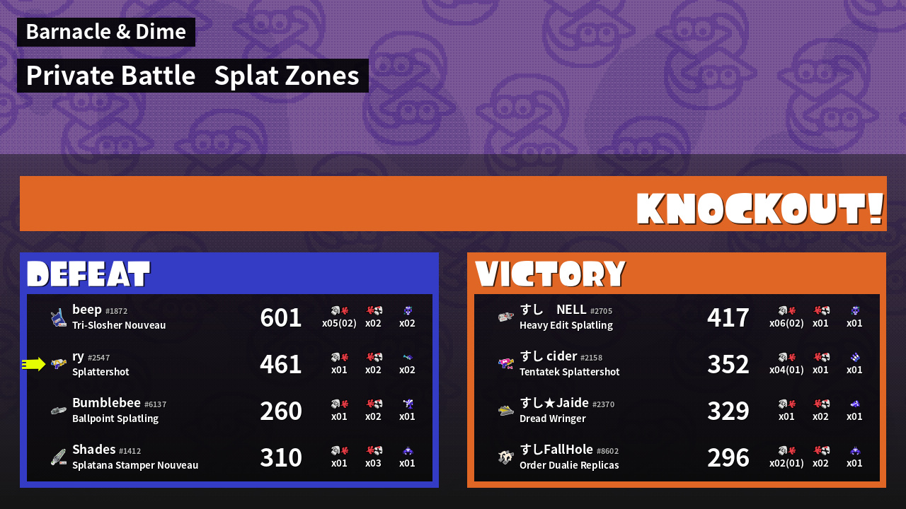 Name | Weapon | Inked | ![]() |