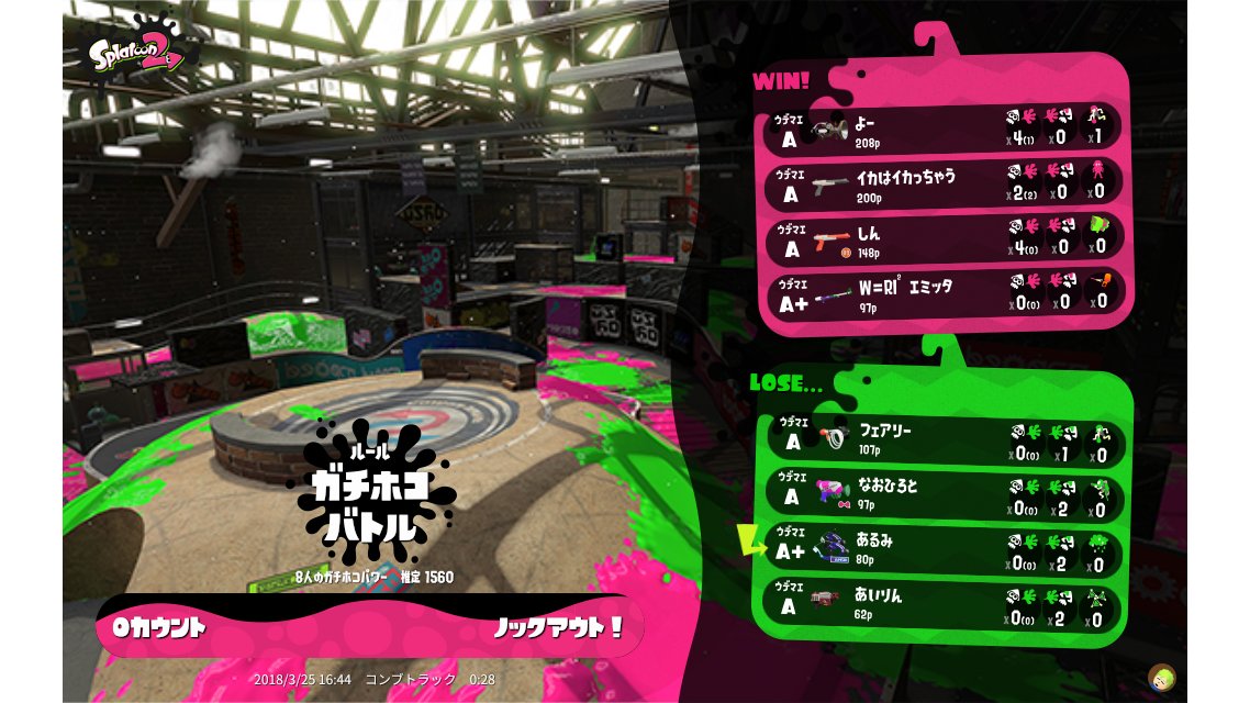 | Name | Weapon | Level | Rank | Inked | k+a/sp | k/d |