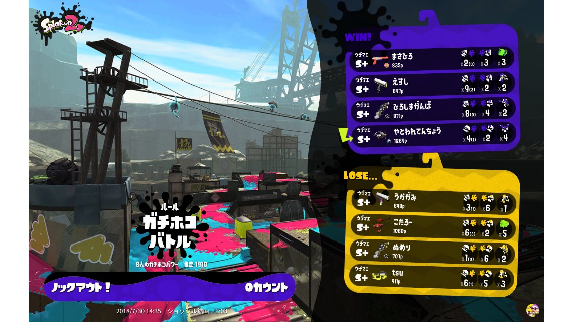 | Name | Weapon | Level | Rank | Inked | k+a/sp | k/d |