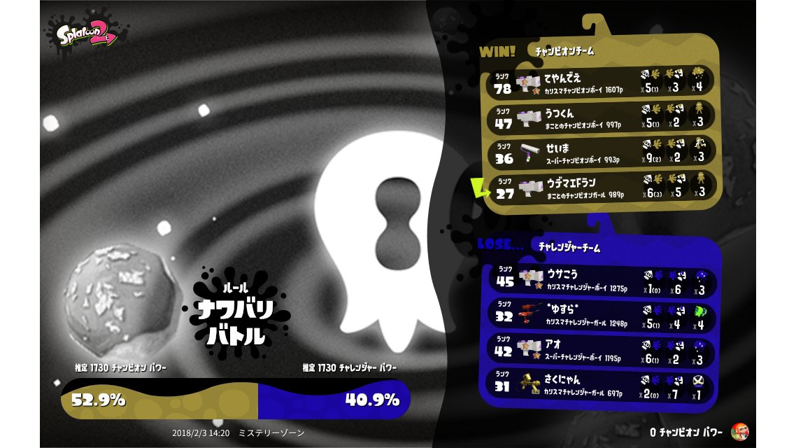 | My team's splatfest power | 1,730 | ||||||||||||||||||||||||||||