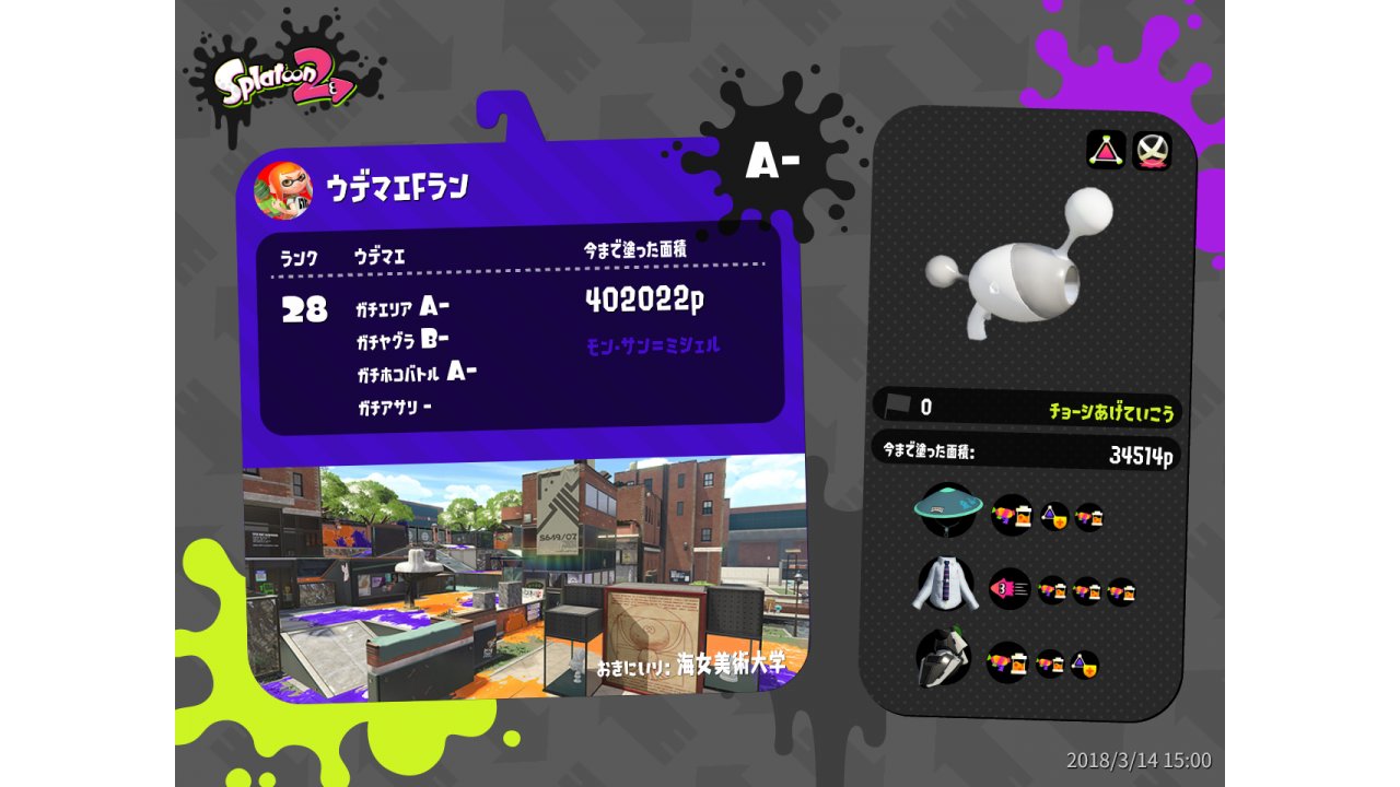 | Weapon | Luna Blaster ( Splat Bomb, Baller) | ||||||||||||||||||||||||||||