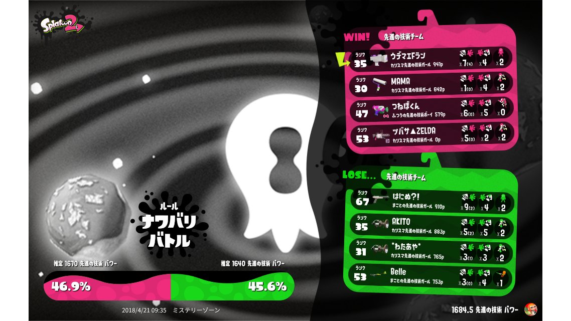 | Splatfest Title | 先進の技術 Champion 58 → 先進の技術 Champion 64 | |||||||||||||||||||||||||||||||||||||