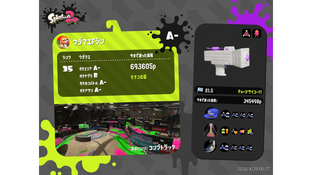 | Name | Weapon | Level | Rank | Inked | k+a/sp | k/d |