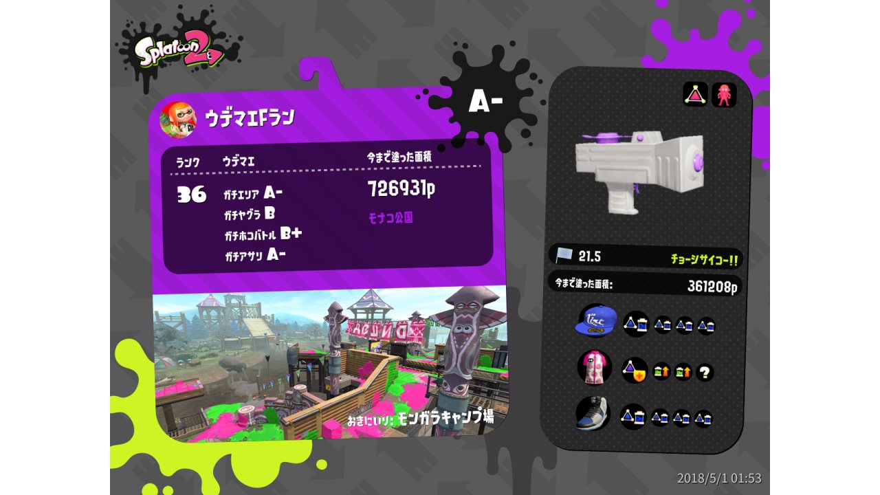 | Name | Weapon | Level | Rank | Inked | k+a/sp | k/d |