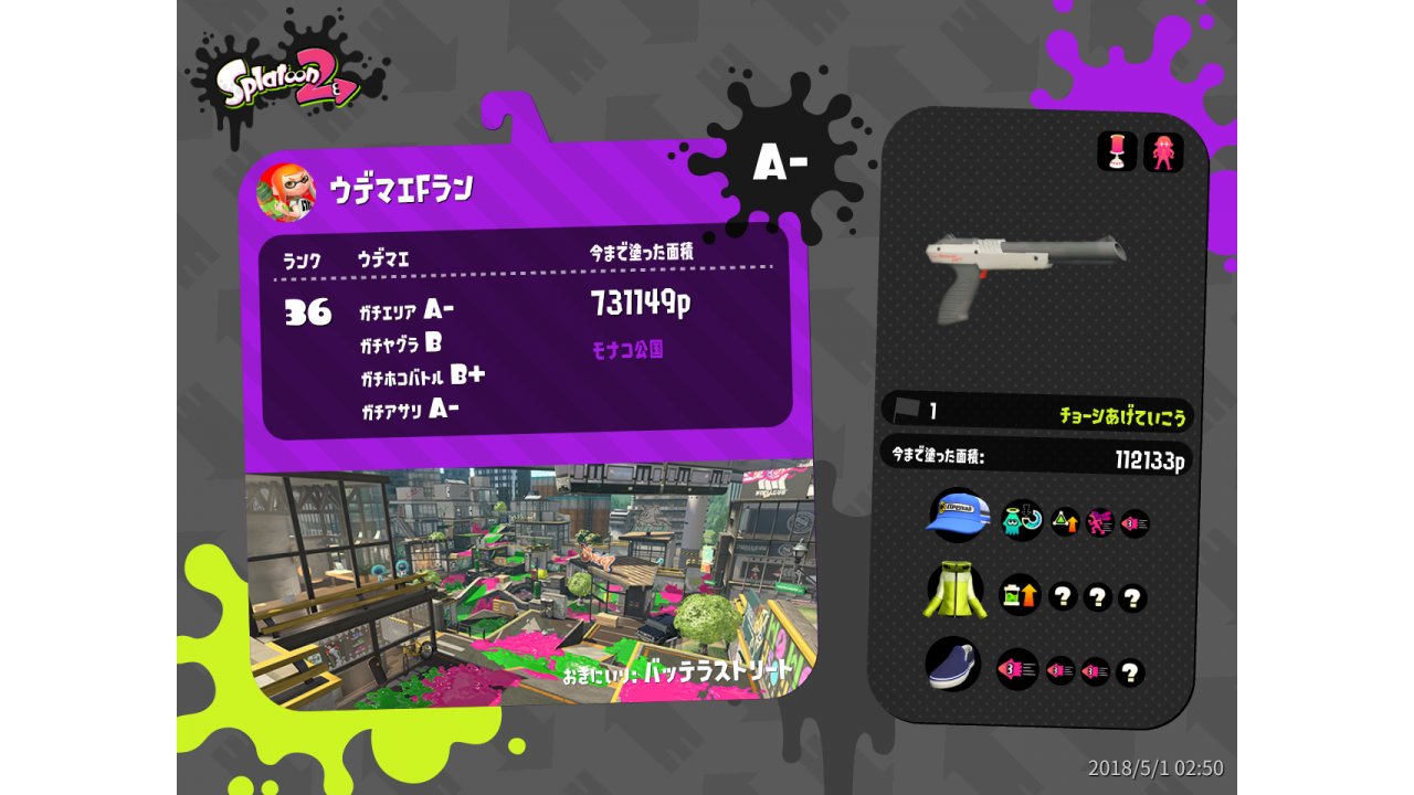 | Weapon | N-ZAP '85 ( Suction Bomb, Ink Armor) | ||||||||||||||||||||||||||||||||||