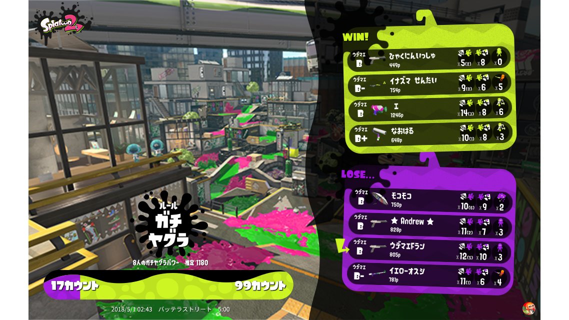| Name | Weapon | Level | Rank | Inked | k+a/sp | k/d |