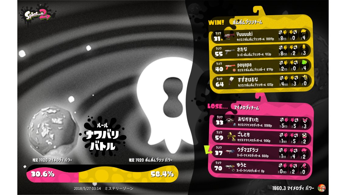 | Splatfest Title | マイメロディ Defender 5 → マイメロディ Defender 7 | |||||||||||||||||||||||||